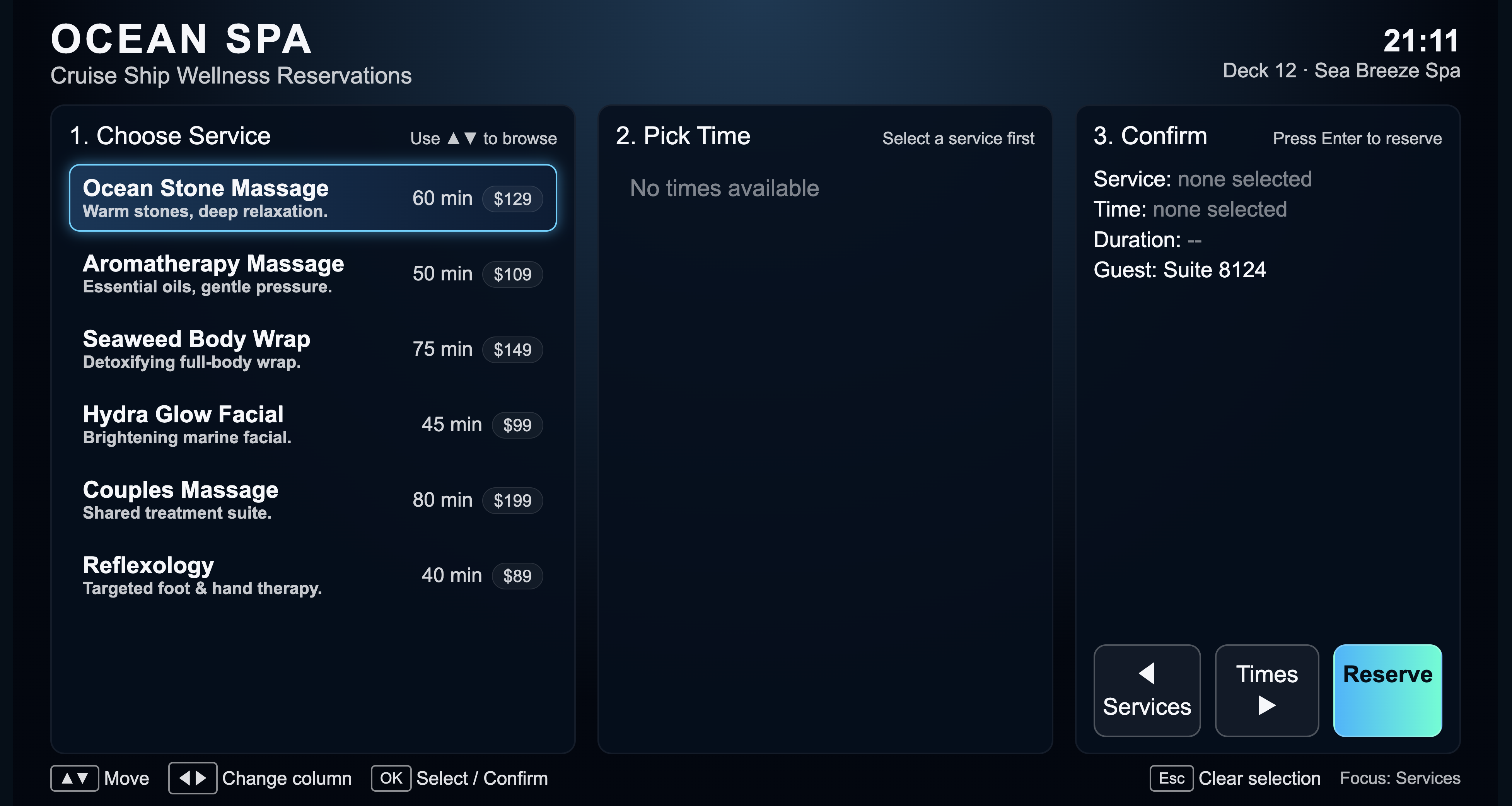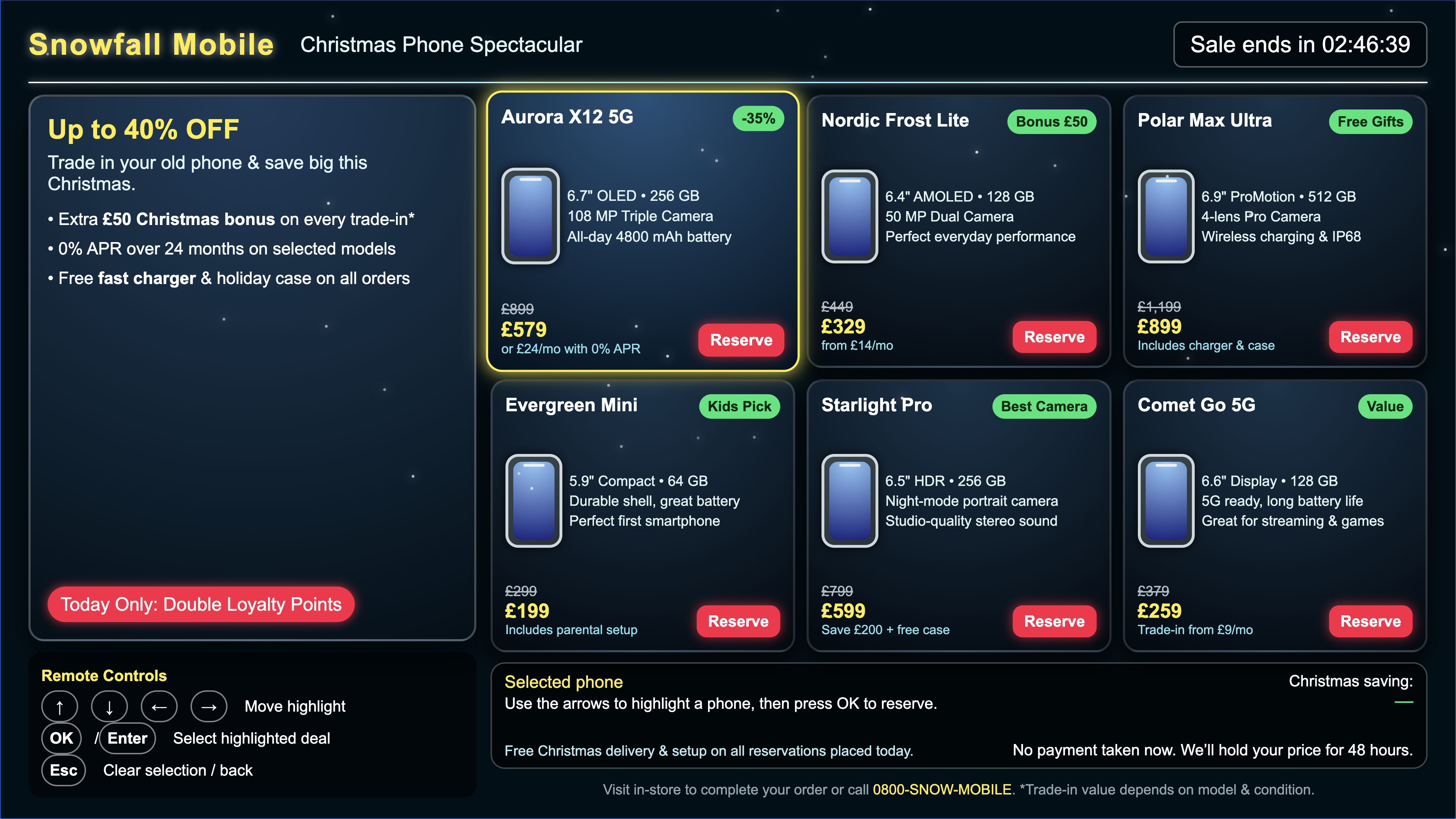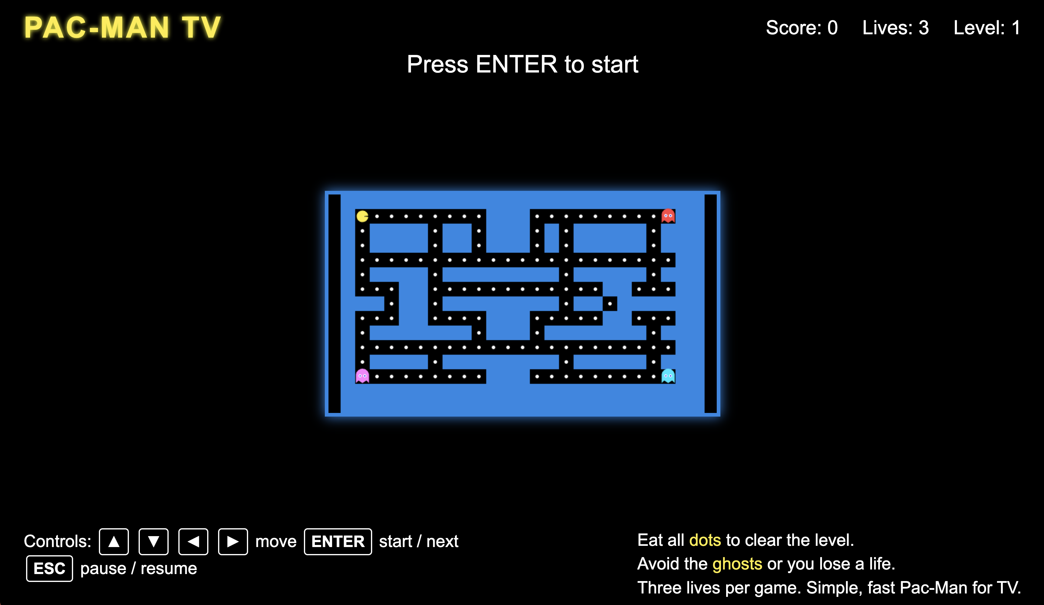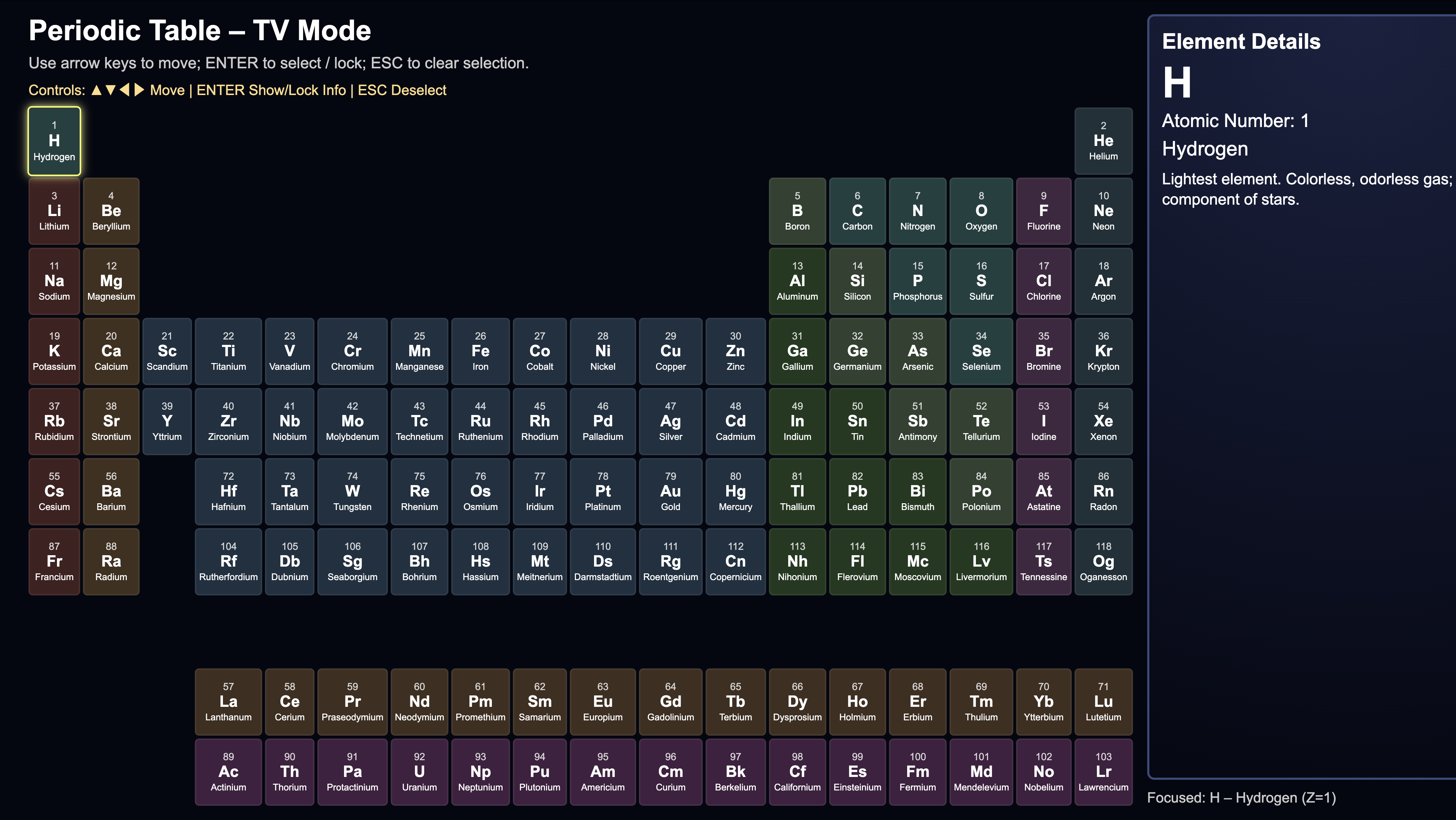 Generate a single-file web app for a 16:9 TV (1920x1080).