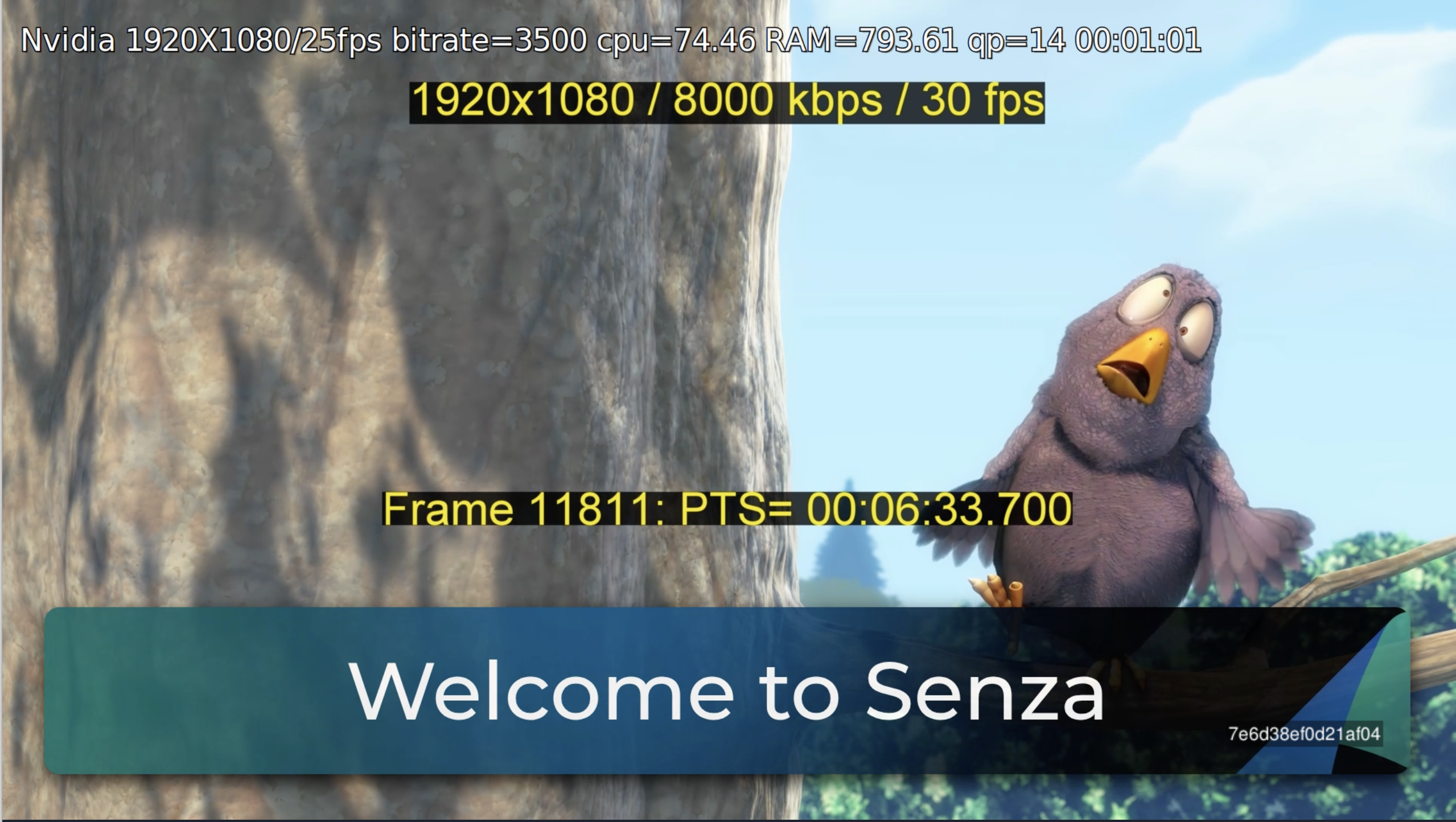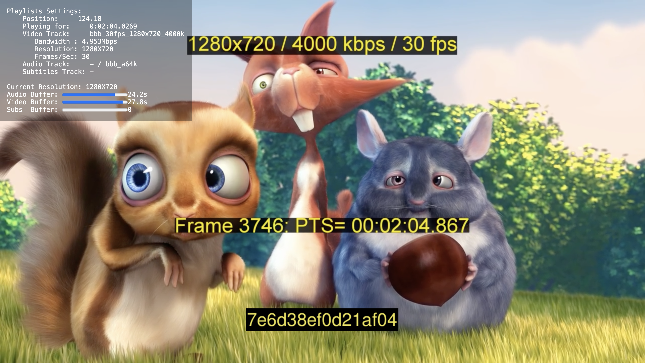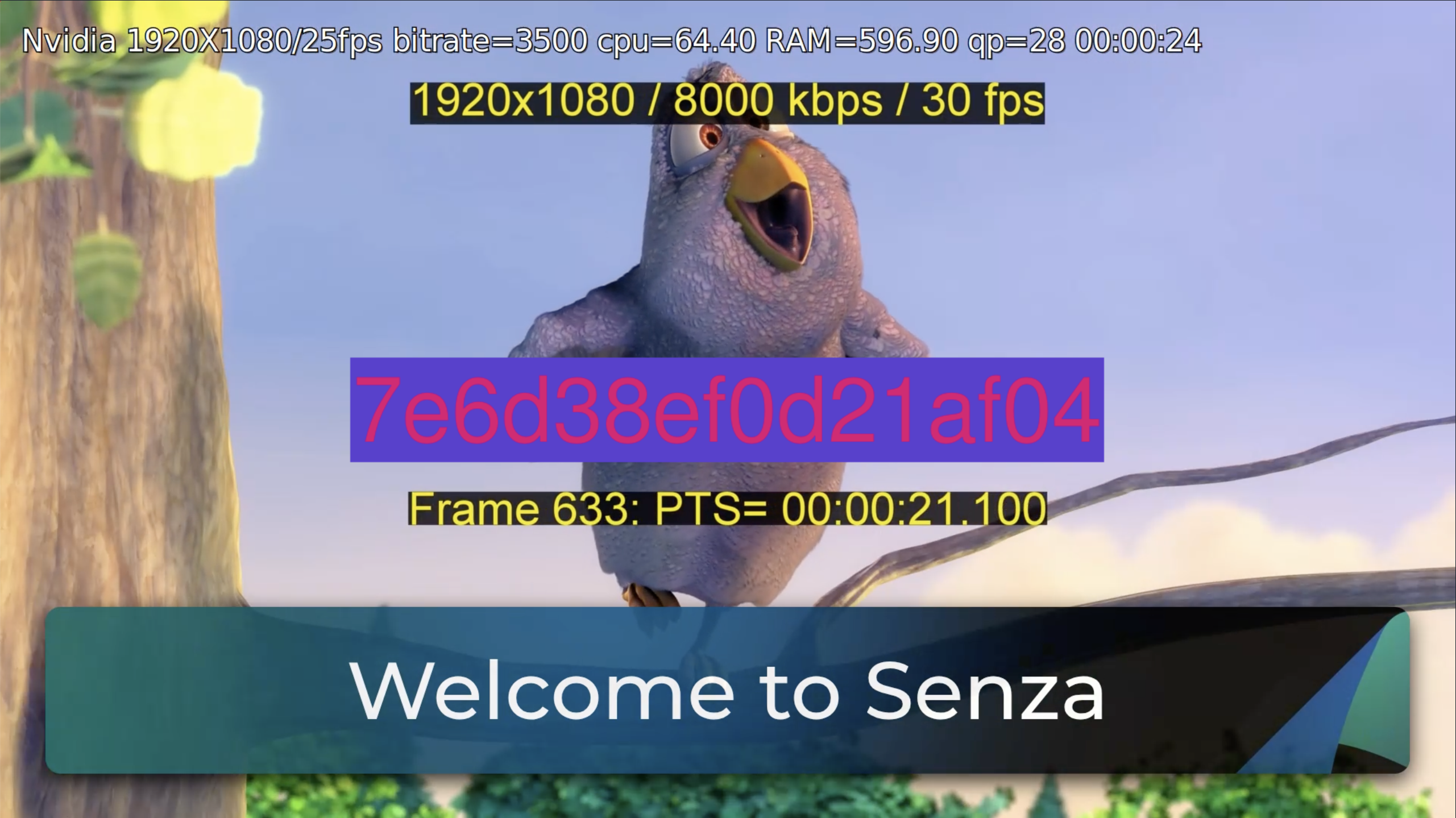 In this screenshot, the resolution and timecode data is part of the video, while the device ID is injected by the device fingerprinting feature. The fingerprint has been styled using the API to match the other text, but is rendered in a completely different way!