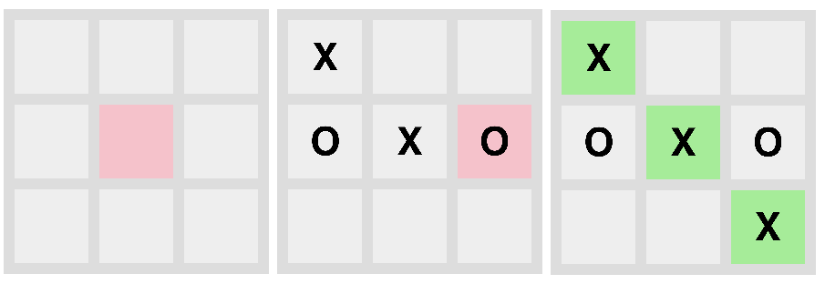 Each time someone makes a move, we check if they have won. There are eight possible ways to get three in a row: three rows, three columns, and two diagonals. Here we iterate through each of those groups of three cells, checking if the values are non-empty and identical. If so, we change the class on the winning cells and set a flag to indicate that the game is over.